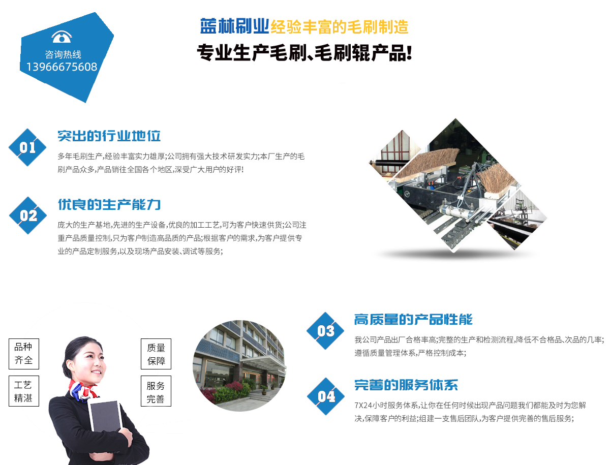 安徽藍(lán)林刷業(yè)有限公司座落于國(guó)家級(jí)風(fēng)景名勝區(qū)天柱山東北麓,古皖文化發(fā)源地—安徽省潛山縣源潭鎮(zhèn),是安徽省規(guī)模最大的刷業(yè)生產(chǎn)廠(chǎng)家之一。公司占地15000平方米,建筑面積2萬(wàn)余平方米,固定資產(chǎn)5000余萬(wàn),中國(guó)刷業(yè)協(xié)會(huì)副理事長(zhǎng)單位,擁有員工和技術(shù)人員100余人。公司從事研發(fā)制造工業(yè)毛刷、毛刷輥、尼龍刷輥等刷制品的專(zhuān)業(yè)制刷廠(chǎng)家...